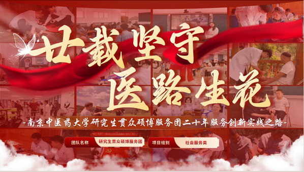 南京中医药大学研究生贯众硕博服务团自成立以来,积极响应“健康中国”与“乡村振兴”国家战略,二十年间持续深入贵州榕江、四川都江堰、雅安、河北张家口等多地基层一线,开展中医药健康服务、文化传播与科技助农实践。团队依托校地共建、党建联动、校企协同等机制,整合多学科硕博研究生资源,推动中医药服务下沉、人才培养与产业振兴深度融合。近年来,该项目作为教育部学位中心“研究生新时代伟大变革暑期实践”立项项目,服务团工作得到了教育部学位与研究生教育发展中心研究生工作处和江苏省教育厅研究生教育处的高度重视,形成“党建引领+文化传承+健康惠民+产业赋能”四位一体的可持续公益模式。