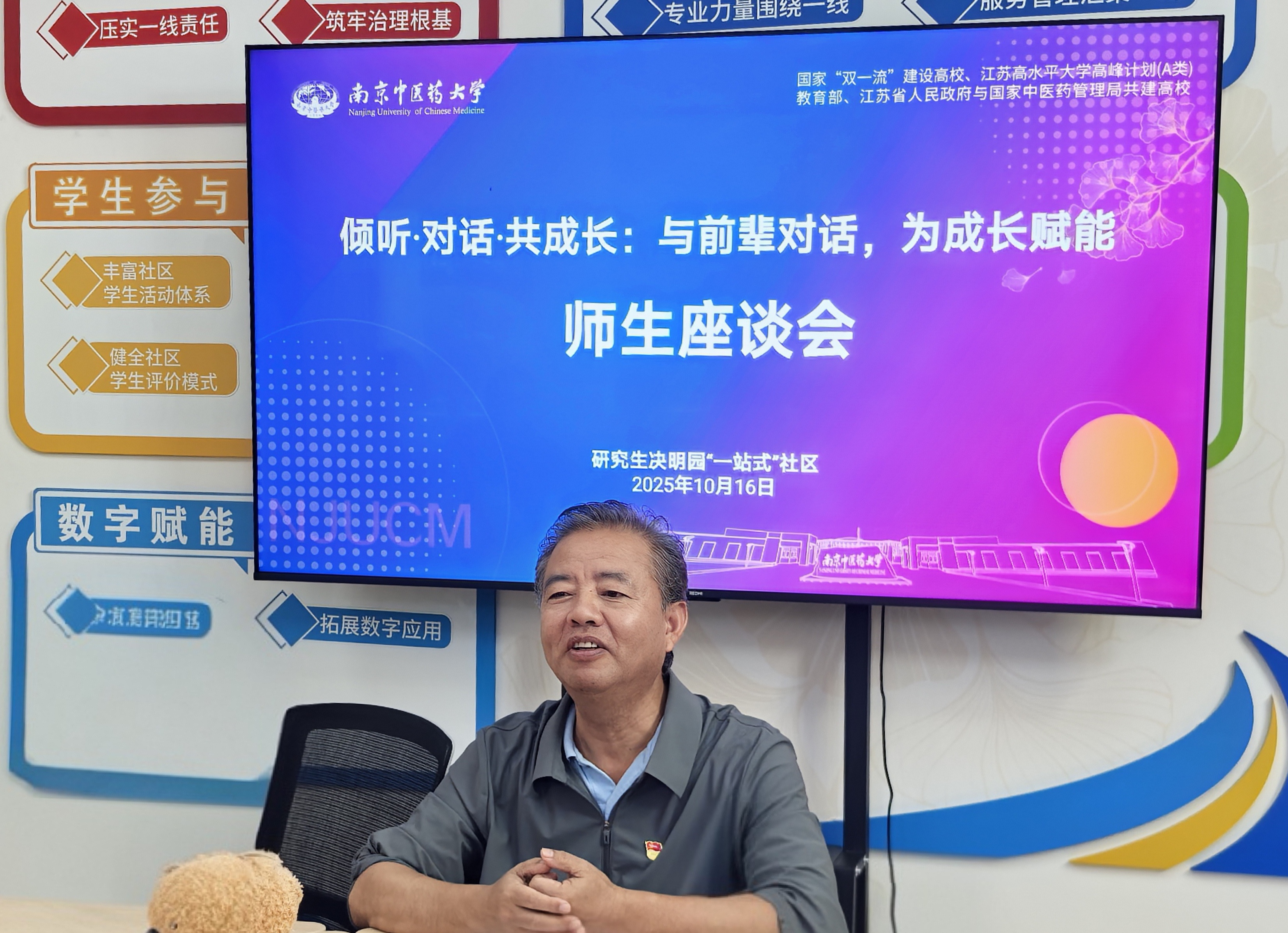 活动现场交流氛围热烈,师生围绕理想信念、学术追求与职业发展展开深度对话。此次座谈会既是师生智慧的碰撞,也是中医药文化在社区中的生动实践,更是“三全育人”理念的落地生根。研究生决明园“一站式” 学生社区将持续搭建研究生成长平台,助力更多青年党员在传承中医药文化中坚定信念、砥砺奋进,在时代洪流中勇担使命。