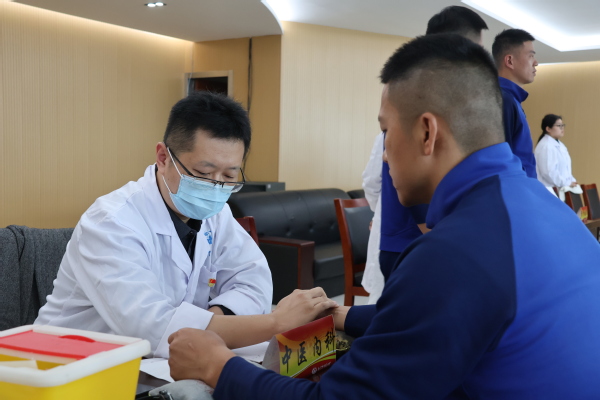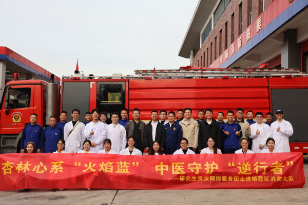 在我国第34个全国消防宣传月来临之际,南京中医药大学研究生贯众硕博服务团于10月29日走进南京市栖霞区消防大队,开展以“杏林心系‘火焰蓝’,中医守护‘逆行者’”为主题的义诊实践活动。本次活动由党委研工部联合党委保卫部及第一临床医学院国医大师周仲瑛名医传承党支部共同发起,是推动研究生思想政治教育与社会实践相结合,促进研究生全面发展的有力举措。